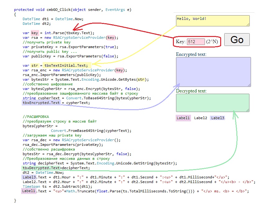 Implementation of RSA encryption algorithm in C#